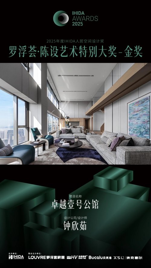 近日,备受瞩目的IHIDA人居空间设计奖2025年度评选结果正式揭晓。CN承恩设计创始人、国际著名设计师梁景华先生弟子-钟欣茹女士,凭借其匠心独运的设计作品《卓越壹号公馆》,在激烈的角逐中脱颖而出,荣膺本届“罗浮荟·陈设艺术特别大奖”金奖,并获十万元奖金殊荣。