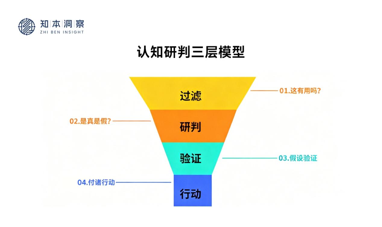 知本洞察提出了一套用于复杂环境的判断模型,被称为 “三层认知法”,用于剥离噪音,保留核心。