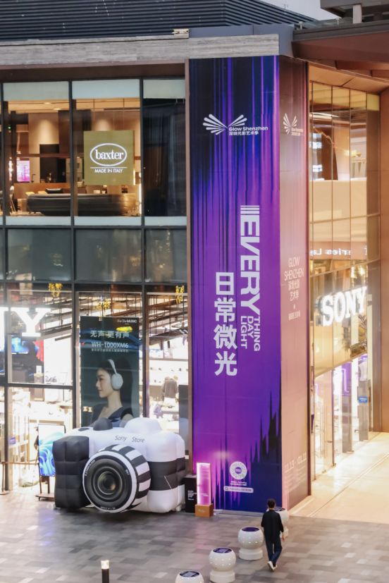 福田光影艺术季深度整合 “宜文旅商” 多元资源,联动深业上城、卓悦中心、领展中心等全区 9 大热门商圈,打造各具特色的光影艺术景观;同时携手索尼、保时捷、欧普照明、光峰科技、老佛爷百货等近 20 家知名品牌与企业,推出限定消费套餐、品牌联名装置及商圈打卡动线,实现艺术与商业的双向赋能。依托创新的 “光影指数” 评价体系,艺术季量化活动对商圈客流与社交情绪的积极影响,构建起可持续、可复制的城市艺术运营模式。