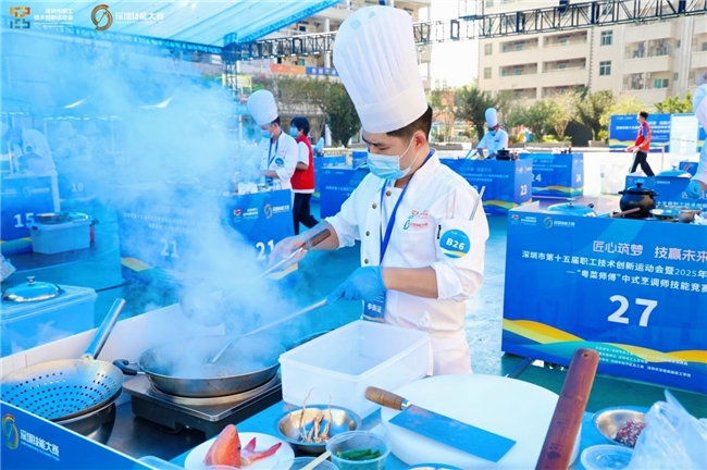 正文:11月16日,深圳市第十五届职工技术创新运动会暨2025年深圳技能大赛--“粤菜师傅”中式烹调师技能竞赛决赛在深圳市深德高级技工学校圆满收官。