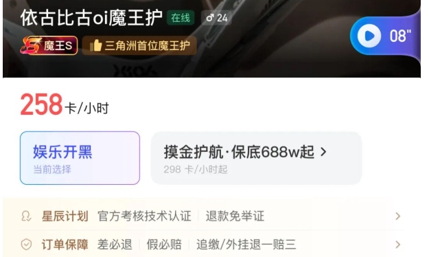 正文:“单护包撤。”在《三角洲行动》中,这简单的四个字,是游戏陪玩大神“依古比古”(游戏昵称)对“老板们”最硬核的承诺。语气中的笃定,源于他绝对的游戏实力——作为头部游戏陪练平台首位通过考核的“魔王护”,他的技术稳居全站顶尖之列。28岁的他,曾经也和大多数年轻人一样,朝九晚五。去年,依古比古辞去工作,全职加入游戏陪练行业。将对游戏的热爱变成了坚定走下去的事业,现在的他周入过万,“全职陪练这条路,我毫不犹豫。”