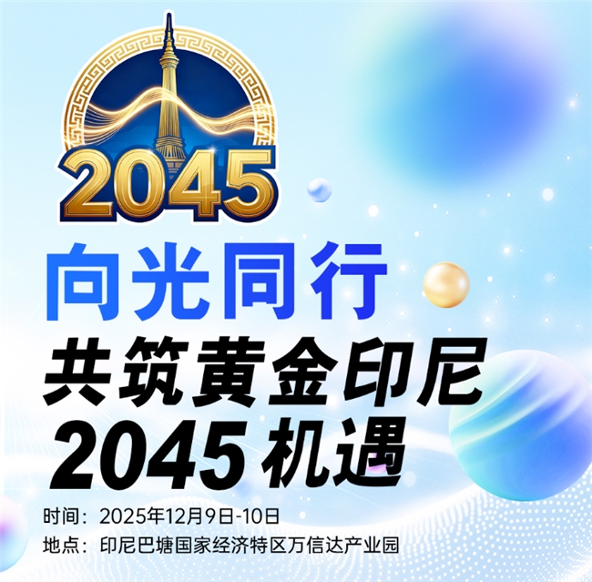时代浪潮,奔涌向前。2025年,作为印尼“黄金印尼2045”宏伟愿景深度对接的关键之年,我们正展开一幅合作共赢的壮丽画卷。在此历史性时刻,万信达控股谨以先行者和共建者的身份,向所有探索中印尼经贸合作机遇的朋友们发出盛情邀请:诚邀您参加“向光同行·共筑黄金印尼2045机遇”产业盛会,见证里程碑时刻,共探无限机遇!