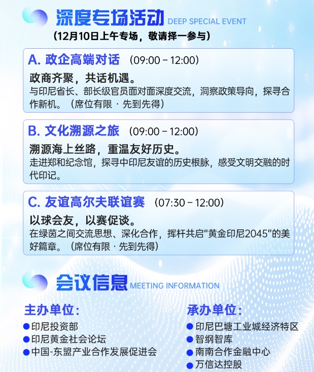 汇聚中印尼权威专家与行业领袖,深度解读“黄金印尼2045”愿景的实施路径与产业政策,以前瞻思维共拓发展新机遇。