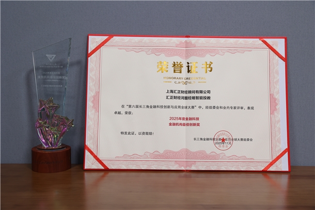 正文:11月21日,2025中国金融科技创新与应用外滩高峰论坛暨第六届长三角金融科技创新与应用全球大赛总决赛在上海绿地外滩中心圆满落幕。作为金融科技领域的顶级盛会,本次大赛汇聚了政产学研投各界力量,而上海汇正财经顾问有限公司凭借核心创新成果,一举斩获“2025年度金融科技・金融机构最佳创新奖”与“2025年度AI应用优秀奖”双项大奖,成为本次大赛的焦点企业之一。