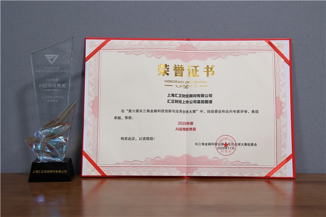 依托“汇正财经上市公司基因图谱”项目荣获“2025年度AI应用优秀奖”,项目基于多模态语义理解技术,深度解析文字、语音情绪与投资者行为轨迹,构建起全面的上市公司画像体系,为投资决策提供了科学、精准的数据支撑,展现了AI技术在金融研究领域的深度应用价值。
