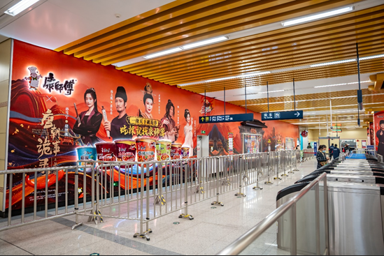 • 线下场景复刻:在西安地铁大雁塔站打造“康师傅面馆”主题站厅,借助唐风文化地标大唐不夜城与地铁高频客流,将品牌场景转化为可触达的文化打卡点,实现沉浸式“内容即体验”的传播升维。