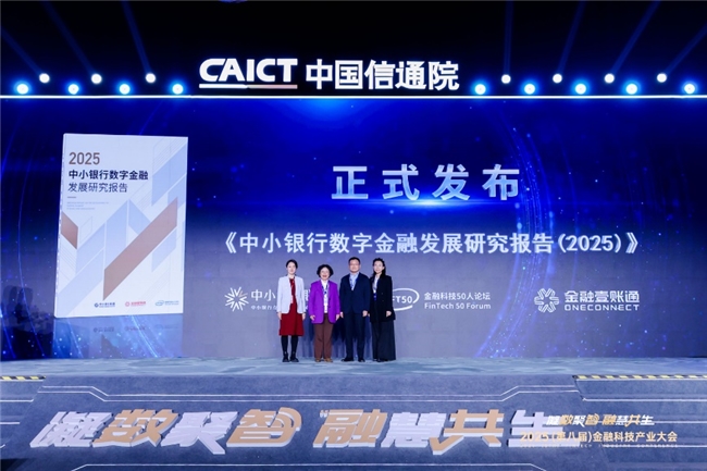 正文:人工智能驱动数字金融高质量发展,中小银行以数智化转型实现降本增效。在12月17日举行的2025(第八届)金融科技产业大会上,中小银行互联网金融(深圳)联盟(以下简称“中小银行联盟”)联合金融科技五十人论坛(CFT50)、金融壹账通发布年度重磅研究成果《中小银行数字金融发展研究报告(2025)》(以下简称“《报告》”),立体呈现广大中小银行数字金融发展总体趋势和突出特征。CFT50青年学者、中国人民大学智慧治理战略研究院执行院长宋鹭作为报告编委会首席专家,向与会五百余位业内人士进行了全面解读。