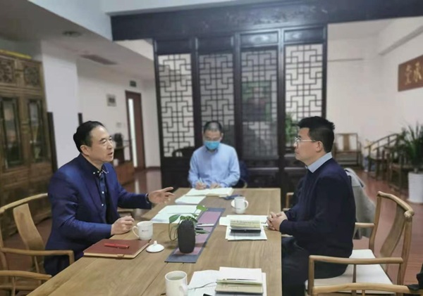 (图为淮安分公司业务人员为桂总推荐融资方案)