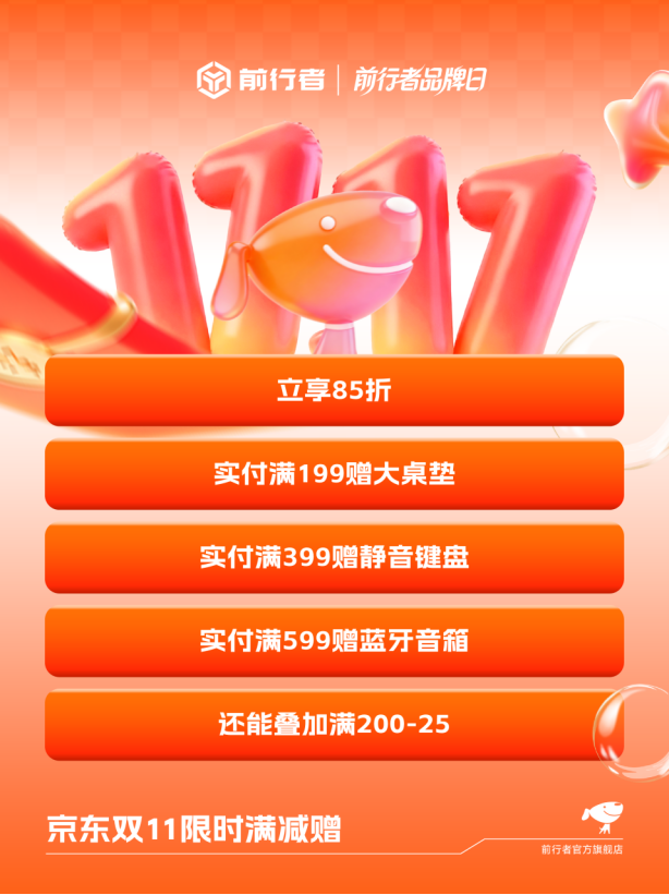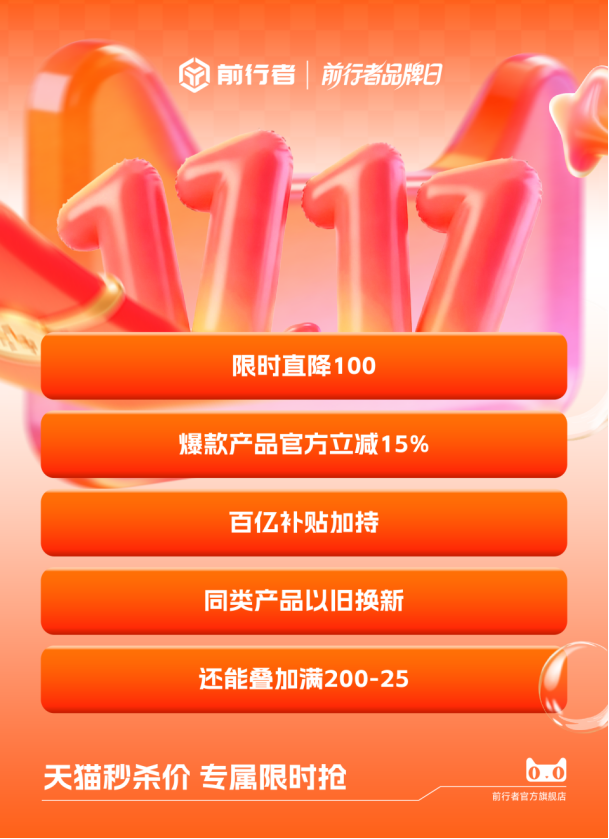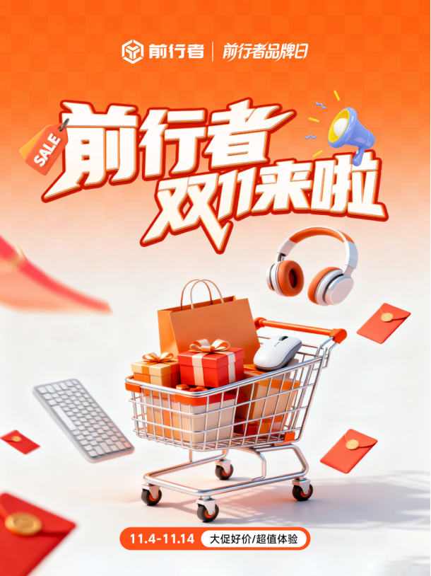 正文:2025年双11购物狂欢已全面开启,深耕外设领域12年国内知名品牌前行者(EWEADN) 凭借多款高性能旗舰外设产品与诚意十足的优惠活动,成为消费者关注的焦点。