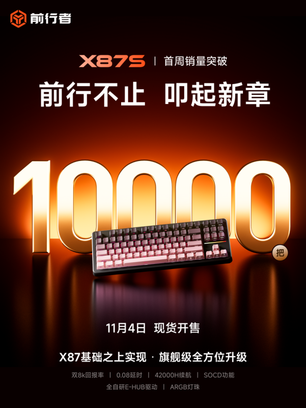 2025年双11大促过半,国产外设品牌前行者(EWEADN)已交出一份亮眼成绩单。其爆款产品X87机械键盘凭借技术实力与高性价比,在抖音、天猫、京东三大平台实现“全域霸榜”,多款键鼠产品亦在细分赛道斩获头部排名,展现出强劲的品牌势能。