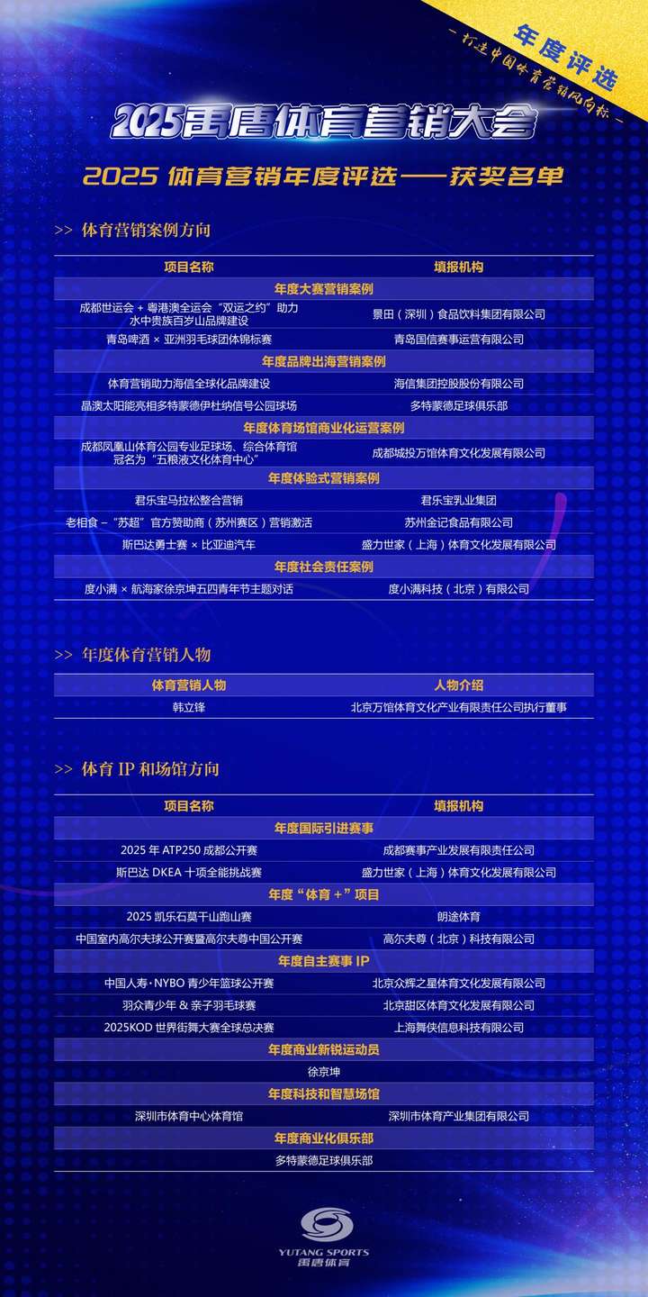 2025禹唐体育营销大会体育营销年度评选获奖名单揭晓