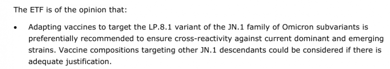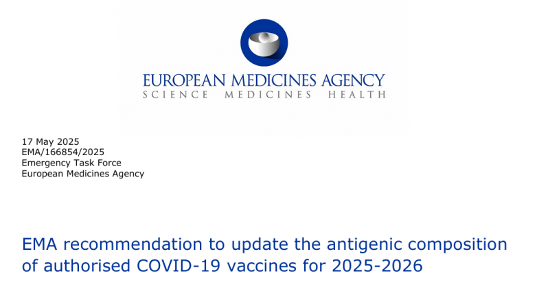 2025年5月,欧洲药品管理局(EMA)建议更新COVID-19疫苗的抗原成分,以用于2025-2026年疫苗接种。EMA紧急工作组(ETF)认为: