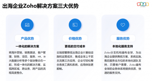 Zoho在解决方案、产品生态、全球服务网络、本地化支持等方面具备多重天然优势,能够精准匹配出海企业需求。具体来看: