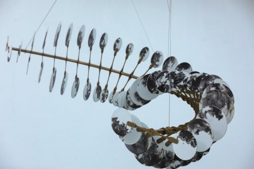 展厅一以“消解-生命力呈现”为主题,分为“天-地之间”“感-知之间”“生-灵之间”“建-构之间”四个展区,展品以“艺术”为核心,如严友人、张宁之雕塑,叶铮、杨纪文之水彩画,杜海军之陶板浅浮雕等。