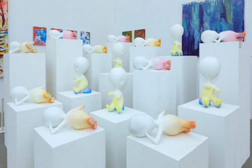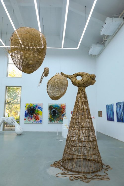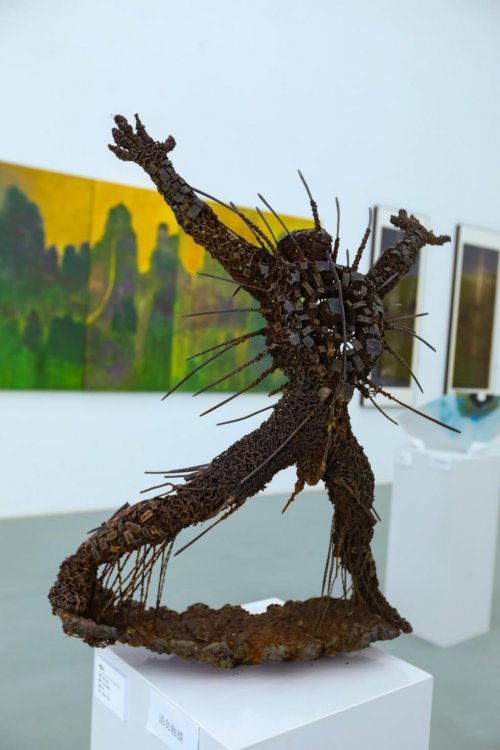 艺术形式并非一成不变,而是随着时代和科技的发展不断迭代创新,此次展览涵盖了绘画、雕塑、装置、数字艺术等多种类,材料亦有木质、金属、水彩、陶板、石膏、玻璃钢、手工竹编、3D打印、屏幕影像等多类,从写实到抽象,从具象雕塑到观念装置,兼容并包。