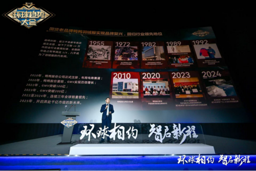 回溯鸭鸭的成长轨迹,其本身就是一部老字号品牌的转型史诗。自1972年诞生以来,鸭鸭作为中国第一件羽绒服的制造者,从计划经济时代的国营工厂,到市场经济浪潮中的波澜起伏,最终凭借对品质的坚守与数字化的革新,实现跨越发展。正如陆占武在演讲中披露,鸭鸭品牌2022年GMV突破100亿元,2023年再攀200亿元高峰,2022-2024年连续三年全球销量领先。