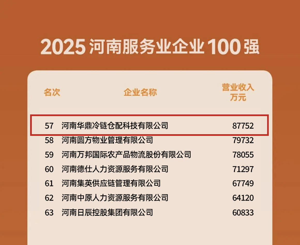 2025河南企业100强发布 华鼎冷链科技入选百强双榜