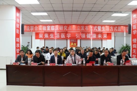 吕梁市离石区卫生健康局副局长、疾病预防控制局局长康志平,北大医学—生命说生活方式医学联合实验室主任、北京大学公共卫生学院社会医学与健康教育系副主任马德福,北大医学—生命说生活方式医学联合实验室副主任、生命说(北京)健康管理有限公司董事长梁志,吕梁泰化集团党委副书记、泰化医院院长张文伟,吕梁泰化集团顾问、泰化医院党支部书记刘德才,吕梁泰化医院健康管理中心主任马海连等相关领导、专家与200位基层医疗工作者共同见证了此次揭牌。