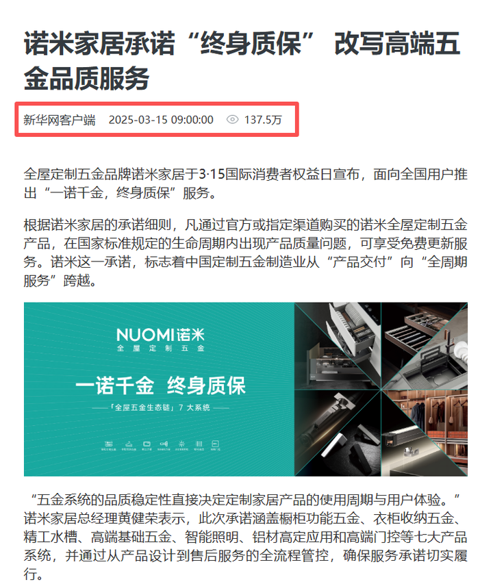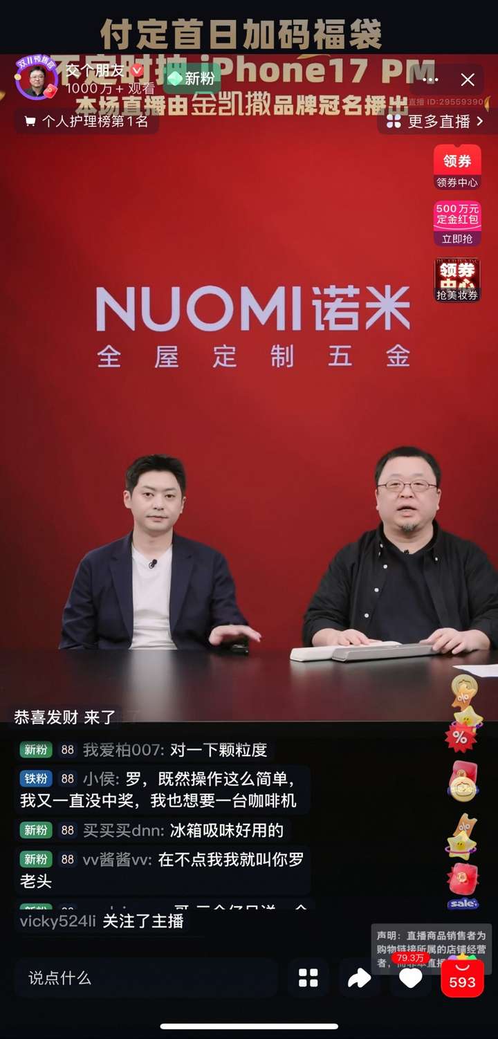 10月15日晚上,高端全屋定制五金品牌NUOMI诺米正式亮相于罗永浩“交个朋友”天猫直播间。此次合作不仅是一次产品直播带货,更彰显出诺米22年来坚守的高品质标准与罗永浩“严选好物”理念的高度契合。诺米通过此次与头部IP的合作,共同推动行业从价格竞争迈向价值创造新阶段,为家居五金行业树立品质新标杆。