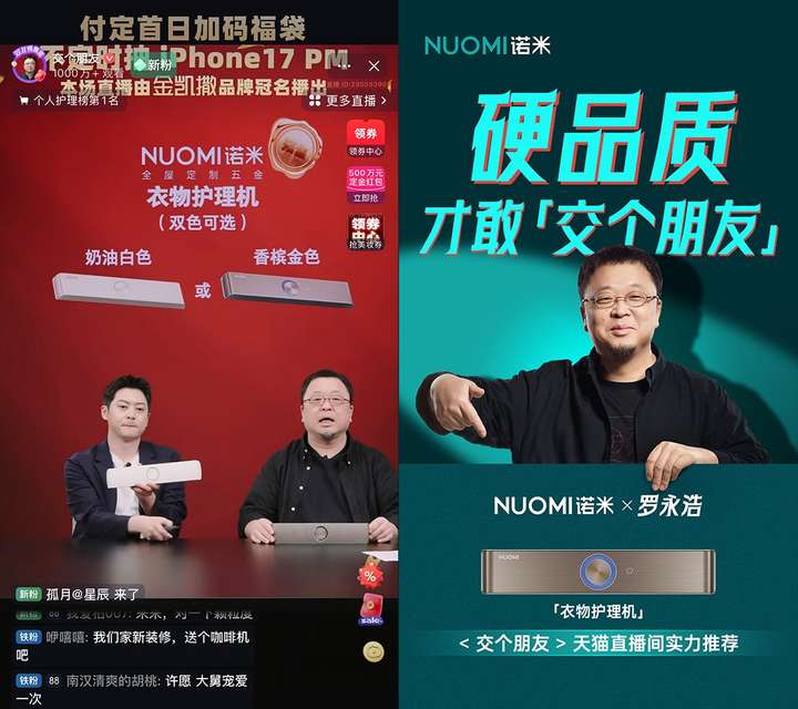 NUOMI诺米在罗永浩“交个朋友”天猫直播间正式亮相