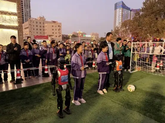 另一端的校园里,一群六七岁的小学生正围着四足机器人踢足球,场边老师用平板讲解控制逻辑,课堂变得生动而富有科技感。