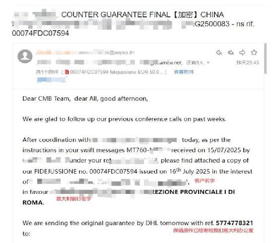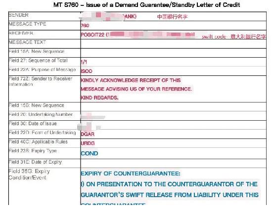 意大利银行回复确认为中国卖家开具保函