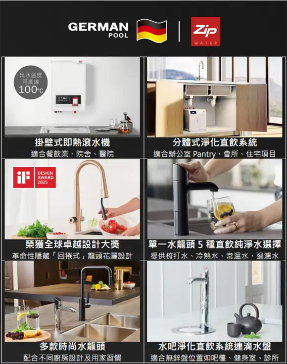 德国宝作为Zip Water在港澳的独家总代理,将为其产品提供专业技术支持和客户服务,确保各类场所包括住宅、企业、医疗机构及会所等都能享受到便捷、健康的直饮体验。