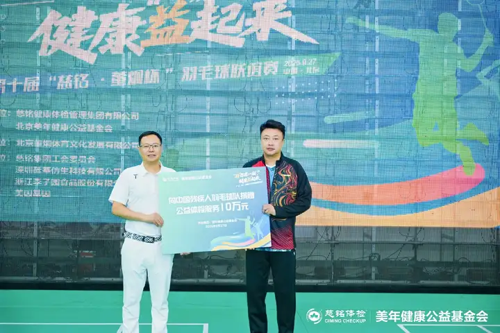 为深入贯彻落实全民健身国家战略,推广普及羽毛球运动,提升全民健康素养,9月27日,慈铭集团联合美年健康公益基金会共同举办第十届“慈铭•董炯杯”羽毛球联谊赛,活动吸引了来自各行各业的20支优秀队伍,百余名羽毛球运动爱好者积极参与。美年集团高级副总裁、慈铭集团党委书记张成刚及羽毛球世界冠军、中国残疾人羽毛球队总教练董炯参加启动仪式并致辞。启动仪式上,慈铭体检向中国残疾人羽毛球队捐赠价值10万元的公益体检服务,用于队员们的健康保障。