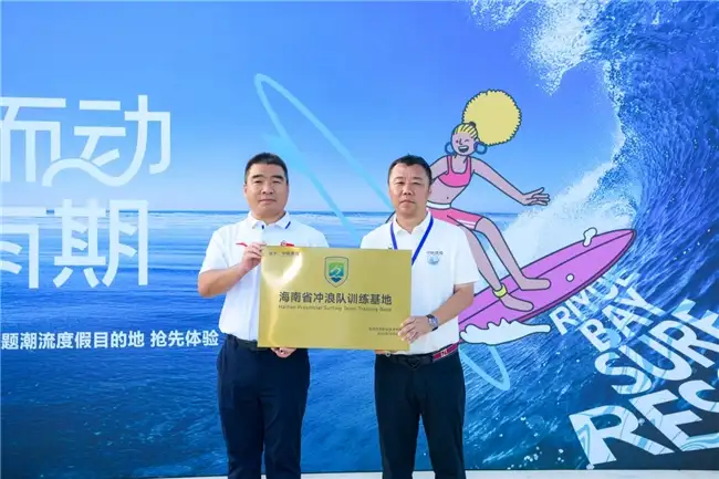 活动在娜娜和多比带来的热情夏威夷舞中拉开序幕,以“不设限的造浪生活”为理念的超级IP瞬间点燃现场氛围。随后,两大专业合作环节将活动推向高潮:海南省体育职业技术学院为度假区授牌,正式授予其“海南冲浪队训练基地”称号,标志着代表中国最高冲浪水平的海南省冲浪队将在此开展重要训练与集训,未来双方将在冲浪人才培养与专业赛事方面展开深度合作;度假区并与澳洲ASI国际冲浪协会完成签约,引入国际认证的冲浪培训体系,助力游客实现从入门到专业的成长。