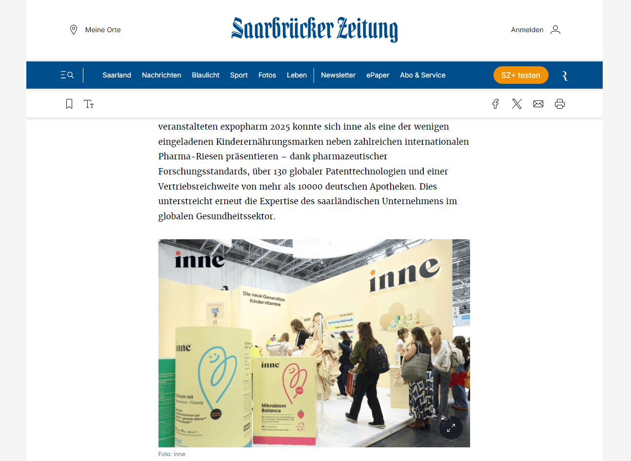 报道提及,inne因你在儿童营养专业领域同样表现卓越,以制药级产品实力、190项国际专利技术及覆盖超万家德国药房的渠道实力跻身全球儿童营养品销量第一。在近期于杜塞尔多夫举办的欧洲规模最大的医药展expopharm 2025上,inne因你作为少数受邀的儿童营养品品牌与国际制药巨头同台亮相,展现出萨尔州本土企业在全球健康领域的专业实力。