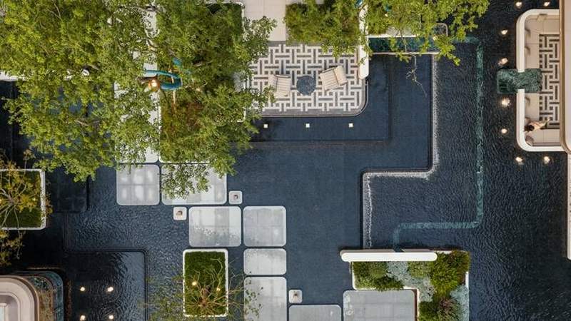 看细节,大地沉淀历久弥新的「永恒感」。摒弃常规的涂料与瓷砖,不惜成本采用多种臻稀石材,打造从建筑外立面到景观园林的完整石材体系。从会所大堂的水刀拼花,到园林节点的奢石铺装,每一处细节都经过多道工艺打磨,最终呈现堪比艺术馆的质感体验。