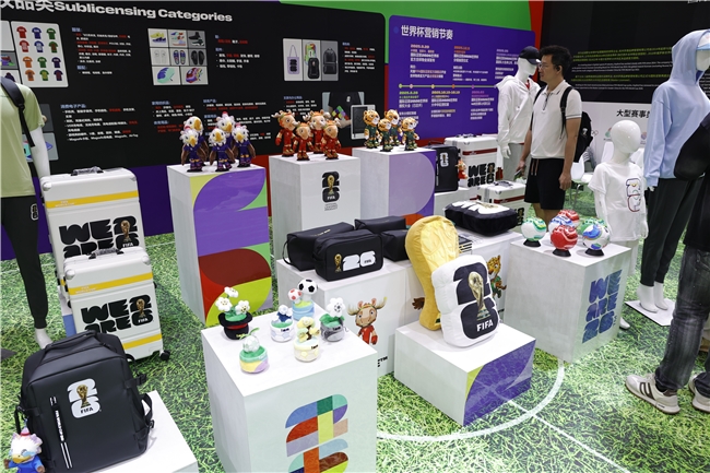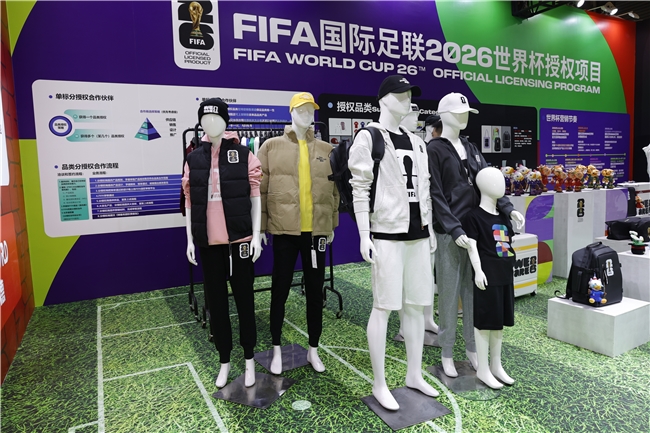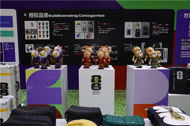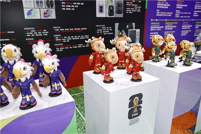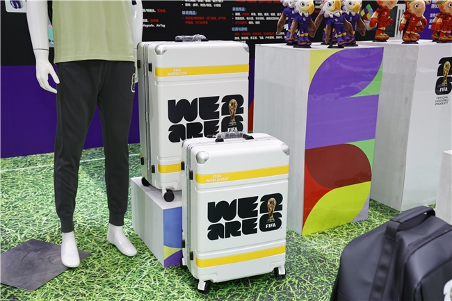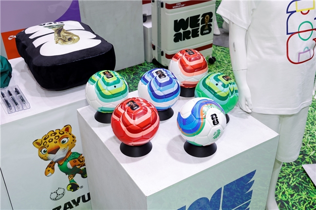此次,湖南桑尼森迪玩具制造有限公司、上海久事体育装备有限公司、北京四得博睿体育文化有限公司、浙江银座箱包有限公司也以分授权商的身份,带着设计时尚、做工精良的2026世界杯周边商品亮相展会。