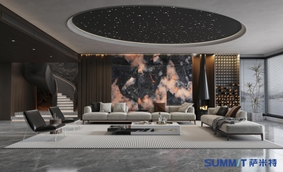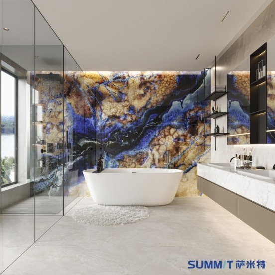 活动现场,萨米特还发布了全新IP系列产品——“探索家·银河系列”。据了解,该系列通过卫星技术突破传统研发逻辑,以卫星遥感影像下的地球地貌为设计灵感,将宏观自然景观转化为瓷砖载体,并运用多重工艺实现灵性透光、立体肌理、光影璀璨的效果。