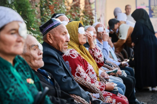 我院惠娜副主任医师说起首日的术前筛查, “从患者登记、测量血压血糖到晶体度数测算等,每个环节我们都进行了流程优化,还特意学习了两句乌语‘Ko'zingizni oching’,意思是‘睁开眼’;"Ko'zlaringizni yuming",意思是‘请闭上眼’。以便在手术中与患者进行基本沟通。”