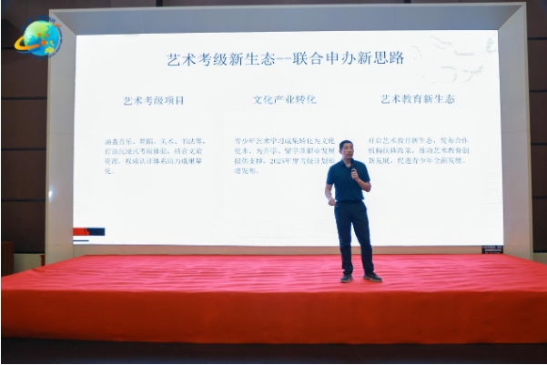 图:广西美育学会艺术培训委员会主席-田擎 介绍教育部白名单等文化项目