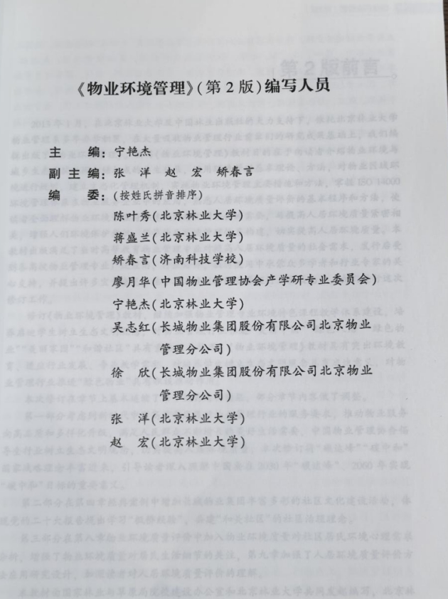 一流的标准需要一流的执行者。2024年由北京林业大学宁艳杰教授出版的《物业环境管理》中收录长城物业的服务案例。长城物业员工吴志红和徐欣作为本书的编委编写部分章节,将长城物业的管理模式编入高校专业教材中,这一突破标志着企业的实践经验正在升华为行业的标准知识体系。