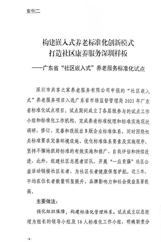 面对我国人口老龄化加速的时代背景,长城物业旗下共享之家积极探索"物业+养老"服务模式,参与制定社区嵌入式养老服务标准。这些标准涵盖了适老化改造、专业照护、健康管理等服务细节,为物业服务企业参与养老服务提供了实践范本。