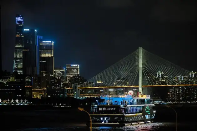 华灯初上,江风裹挟醇厚酒香,嘉宾们品鉴国窖1573的同时,见证黄浦江两岸璀璨夜景,让百年浓香成为传递中国城市美学与文化魅力的独特载体。