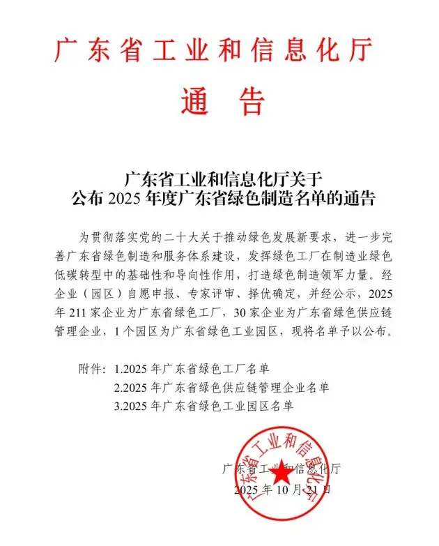 近日,广东省工业和信息化厅正式公布2025年度广东省绿色制造名单,一品红药业集团股份有限公司子公司广州市联瑞制药有限公司(下称联瑞制药)凭借在绿色制造与低碳管理领域的出色实践,获评“广东省绿色工厂”称号。这一荣誉标志着公司在推进绿色可持续发展、建设环境友好型智能制造工厂方面取得的成果获得权威认可。