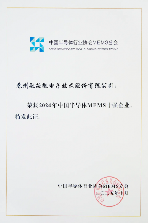 会上正式揭晓了2024年度“中国MEMS十强企业”榜单,名单由中国半导体行业协会根据行业季度统计报表及各地方协会统计数据评选出,敏芯股份凭借全产业链技术优势与市场统治力多年入选榜单。