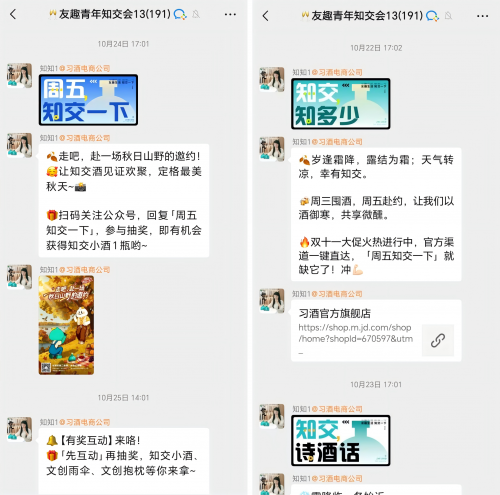 与此同时,为强化“周五知交一下”的社群心智,习酒・知交酒还在私域设计了一套周度运营动作。