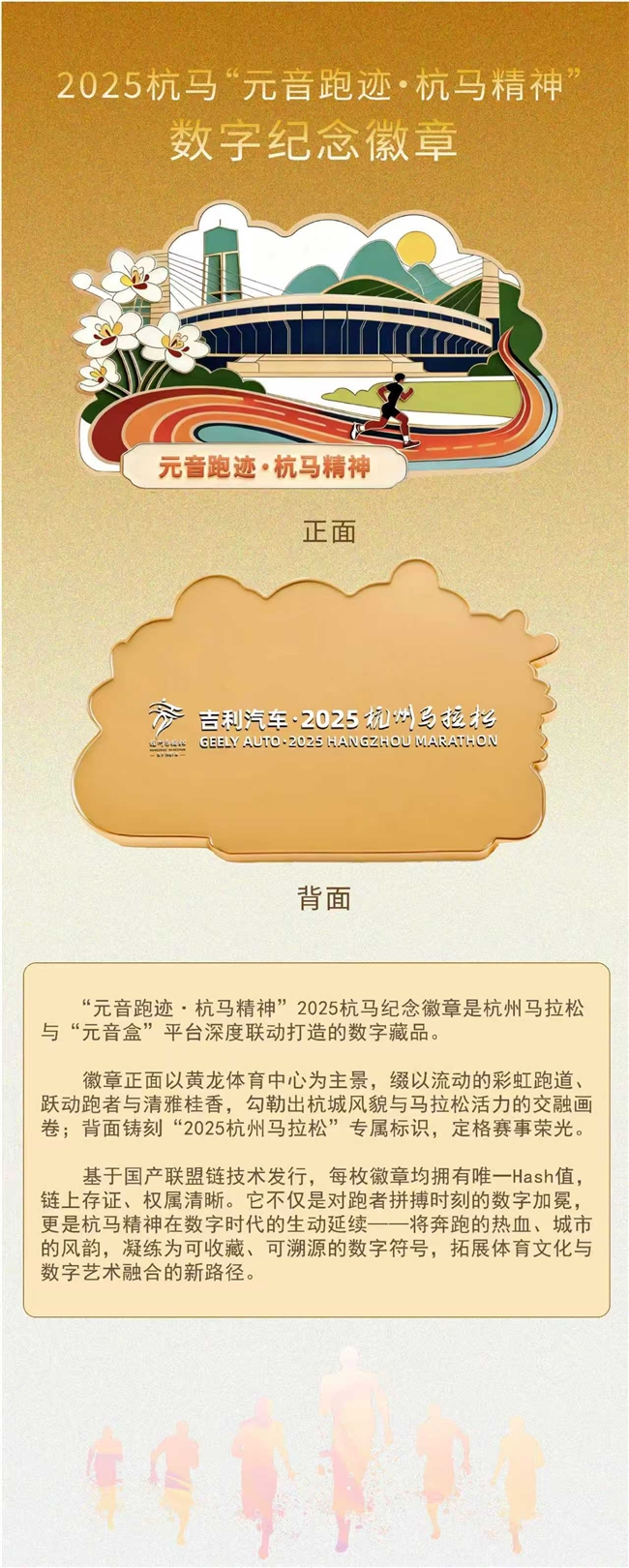 在“吉利汽车·2025杭州马拉松”即将鸣枪开跑之际,浙江文艺音像出版社联合浙江黄龙体育发展有限公司,正式启动“元音跑迹·杭马精神”数字纪念章计划。该系列数字权益将于出版社自主研发的“元音盒”数字内容服务平台上线,为参赛者和广大体育爱好者提供具有收藏与纪念价值的数字产品。