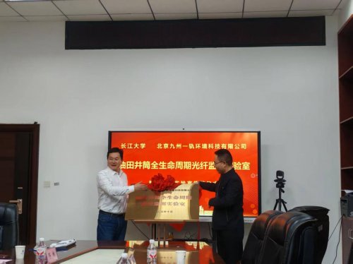 10月28日,北京九州一轨环境科技股份有限公司与长江大学石油工程学院在长江大学武汉校区举行“油田井筒全生命周期光纤监测实验室”揭牌仪式。长江大学石油工程学院常务副院长李忠慧、副院长郑双进,九州一轨副总裁兼副总工程师丁德云、声纹信息研究院副院长高培正共同出席并揭牌。