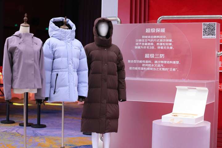 在超级保暖区内,波司登带来多个新款羽绒服,从百搭短款到过膝长款,可以满足日常通勤和户外运动的多种场景需求;海澜之家则展出了拥有亲肤面料,潘展乐同款石墨烯内里男士羽绒服,以及董事长推荐的东方空间男士外套;超级柔软展示区内,鄂尔多斯1980、ERDOS带来了纯羊绒双面呢大衣、抗菌圆领羊绒衫、羊绒裤,羊绒大衣、休闲直筒裤、圆领商务羊绒衫等一系列羊绒制品,诠释高品质羊绒的细腻触感体验。