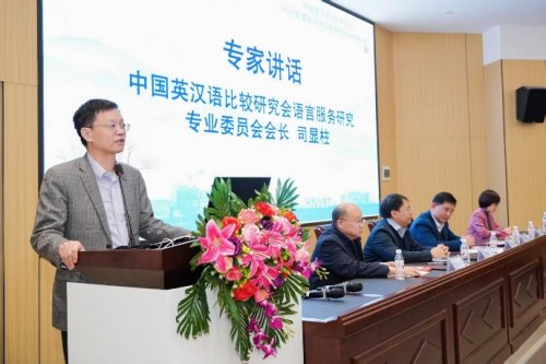 在开幕式致辞中,王进副校长代表学校向与会专家学者表示热烈欢迎。他简要介绍了学校的发展历程和学科建设成果,强调在数智时代背景下,语言服务已从“沟通工具”升级为“全球化战略资源”,高校应积极推动语言服务与数字技术深度融合,为讲好中国故事、传播中国声音贡献智慧力量。周启强书记随后汇报了会议筹备工作情况。随后司显柱会长在讲话中代表专业委员会对承办方的辛勤付出表示感谢,指出委员会始终致力于推动语言服务领域的理论创新与实践发展,积极搭建高水平学术交流平台,并强调在当前全球化与数字化深度融合的背景下,语言服务研究肩负着促进文明互鉴、助力中国文化国际传播的重要使命。