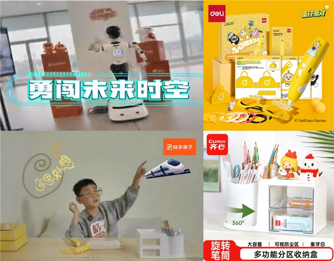 当大家带着好奇与期待勇闯未来时空,智能互动屏幕与智能机器人让萌娃们瞬间瞪大眼睛。萌娃们在唐九洲的指导下,使用得力(deli)蛋仔派对3D打印笔创作“未来文具”,天马行空的创意让人惊叹!孩子们在展示奇思妙想的同时,也没有忘记使用齐心卡通可爱旋转笔筒与收纳盒组合整理桌面,称赞笔筒的360°旋转设计非常方便拿取。