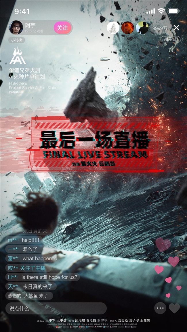 近日,华谊兄弟旗下厂牌华谊兄弟火剧正式发布名为“H·AI火种计划”的AI制作片单,该计划涵盖9部AI短剧与1部AI电影,“H·AI火种计划”一方面标志着华谊兄弟正以积极开放的态度拥抱AI技术,主动抓住技术变革的机遇;另一方面也代表了影视行业对AI技术的全面应用和商业化实践,真正打造面向C端市场的成熟产品,具有里程碑式的意义,将为行业带来更大发展空间和更高效能收益的可能性。该片单计划由杭州华谊兄弟火剧文化有限公司、华谊兄弟电影(佛山)有限公司、广东南都娱乐传媒股份有限公司联合出品。