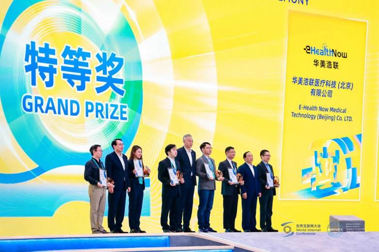2025年 11月9日上午,2025年“直通乌镇”全球互联网大赛总决赛颁奖典礼在乌镇互联网国际会展中心圆满落幕。华美浩联医疗科技(北京)有限公司(以下简称“华美浩联”)凭借自主研发的“人工智能医疗健康管理服务解决方案”,成功斩获特等奖最高荣誉,与智元创新、文远知行、小米移动等行业标杆企业并肩领奖,实力彰显中国 AI 医疗领域的创新硬实力。