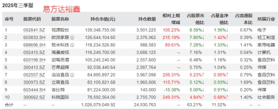 今年3季度,胡文伯的一个主要操作是减仓科技、加仓消费。对此,他在三季报中说,科技板块的上涨,一是因为基本面的持续上修,二是流动性宽松背景下,资金追逐稀缺成长,但大涨后质量和成长的分化已经比较剧烈,出于对质量因子和均值回复的考量,增加了消费仓位。