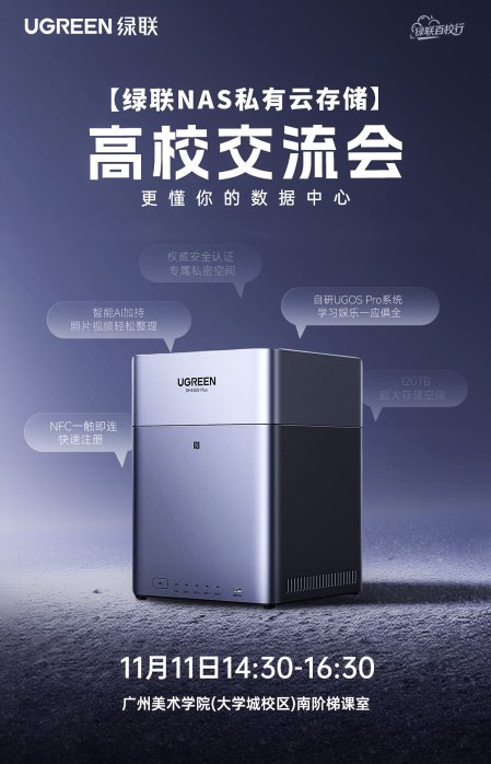 2025年11月11日,绿联“高校NAS交流活动”将在广州美术学院开启特别专场,与更多年轻创作者一起体验绿联NAS私有云在学习、创作与协作中的多元应用,探索智能存储的全新可能。